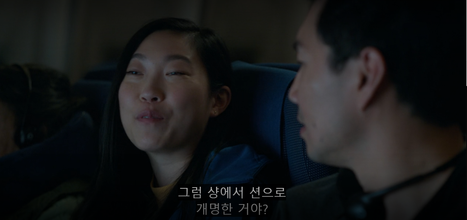 샹치를 통해 이민자 1.5세대, 케이티를 통해 2~3세대 정도의 중국계 미국인들을 대비시키다 보니, 샹치라는 고유한 이름을 설명하는데 케이티가 발음을 잘 하지 못하는 장면. 짧게 이름을 설명하는 씬이었지만 동양인의 이름에 대한 서양인의 조롱, 그리고 이민 1~2세대, 이민 3세대 간의 문화적 충돌을 짧게 본 느낌이었달까.