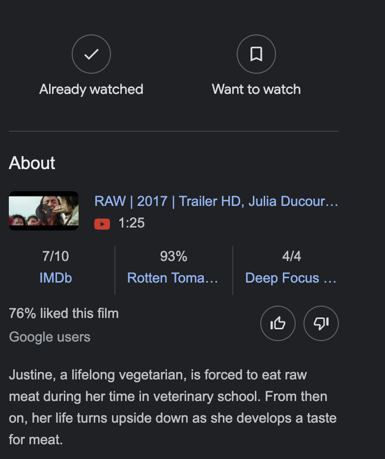 아, 언젠가 이름 들어본 거 같은 제목의 영화, Raw. 영화 제목도 뭔가 함축이 많아보인다.